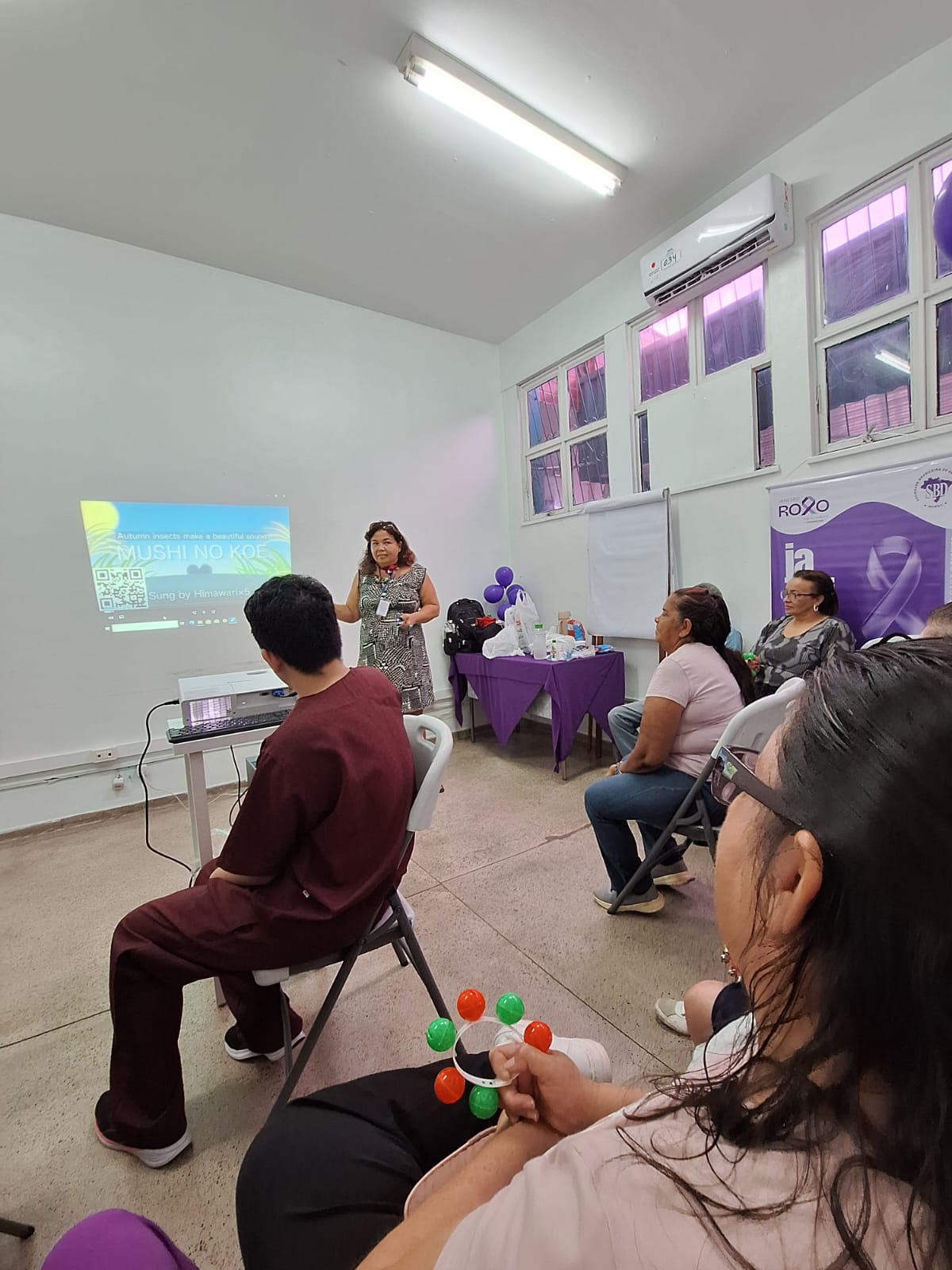 A segunda parte da reunião foi conduzida pela farmacêutica Ana Célia Moura que convidou a todos a participarem de atividades musicais que fazem parte do programa de resgate da saúde através da música; uma intervenção terapêutica que utiliza atividades musicais — como ouvir, cantar, compor ou tocar instrumentos — para auxiliar na recuperação física, mental, emocional e social de pacientes.